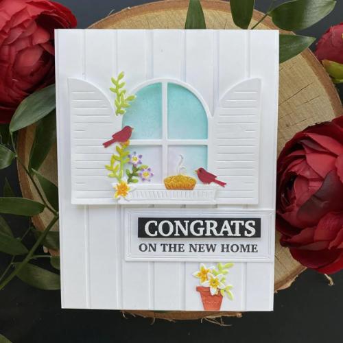 Create a window scene with this set of Fancy Dies. Featuring a window with shutters and seven scene building dies, this set is simply charming, and will be one you reach for year-round. Artist tip: decorate your windows for any holiday using other supplies from your collection; this set is just the thing you need to create personalized cards from the heart.