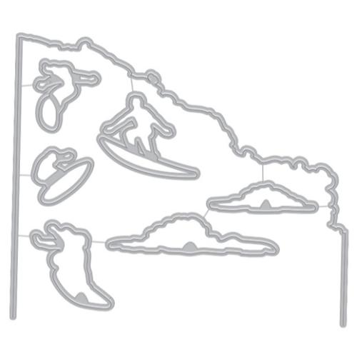 Featuring the perfect wave, 10 themed sentiments, surfers, and sun and cloud stamps, this set will make you wish you were paddling into the surf, or at least enjoying the waves from the beach.