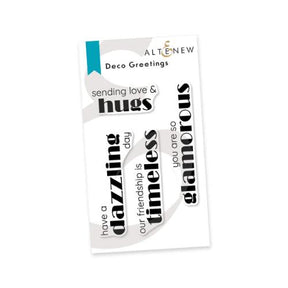 Ideal for handmade cards, the 2" x 3" Deco Greetings Stamp Set will beautifully accentuate your DIY projects. For a true Art Deco look, pair them with hot foiling or metallic heat embossing!