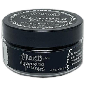 Add dimension to your stamped images with Dylusions Dyamond Pebbles. Create the perfect outline for colouring with Dylusions Dyamond Dust, Dylusions Inks and other mediums. For use with Dyamond Dust, Rocks, Mediums, Boards, Stamps and more. To Use: Ink your stamp image with Dylusions Dyamond medium pad. Stamp onto card stock and sprinkle over the Dylusions Dyamond pebbles. Replace excess pebbles into jar. Heat gently with the Ranger heat tool to raise the image. Colour with chosen medium. Available in a variety of colors, each sold separately.