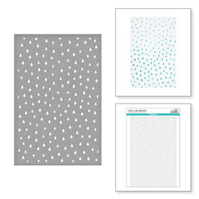 Raindrop Stencil measures 6 x 9-inches in a mylar stencil sheet. It is a perfect size for standard card front from A2 to 5 x7-inch to even the trendy slimline cards. Use with inks, paints and more for a spring rain background on cards and other projects. This stencil coordinates well with E3D-052 Raindrops 3D Embossing Folder.