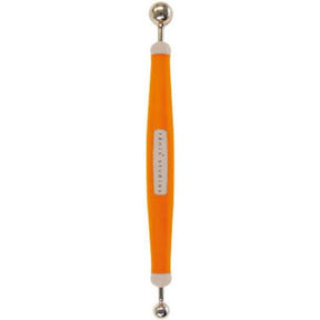 Embossing tool with a rounded metal head of two sizes. The dual ended, 8mm diameter and 12mm. Used to emboss and shape card in conjunction with an embossing mat. Kushgrip soft touch for a comfortable grip.
