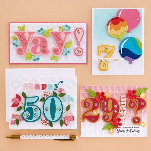 Stitched Punctuation and Symbols Etched Dies are part of the Stitched Numbers Plus Collection. Set of 20 thin metal cutting dies is a wonderful addition to the Stitched Alphabet Collection. These punction and symbols are in serif font and includes its own outline shape. There are floral burst accents of dots and lines not only act as a guide for stitching with embroidery floss and needle but can used as is. Designer’s Tip: use two strands of a six-strand DMC Floss or DMC Diamant Metallic Thread and Size 22 Tapestry Needle (sold separately) are recommended.