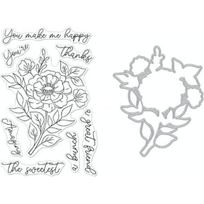 This nine piece die and clear photopolymer stamp set, The Sweetest is from Hero Arts. This set features eight stamps and one thin metal die. The stamps include the flower sprays and seven sentiments and the die cuts out the flower spray. The stamps adhere to acrylic blocks and can be used with your favorite inks, markers, embossing powders, and other crafting mediums (sold separately). The die is compatible with leading die cutting machines (sold separately). These stamps and the die can be used together to create cards, scrapbook pages, tags, and other paper crafting projects. The stamp set is made in the USA.