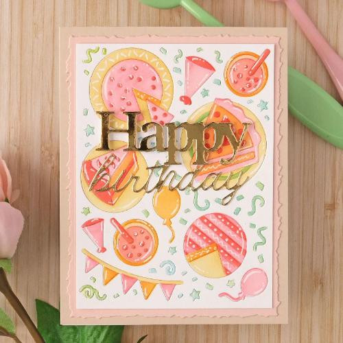 Add a vintage touch to your birthday cards with this 4-layer stencil set designed to match the Cake Time Texture Die. Each stencil is labeled to guide your inking—start with the lightest tone, layer on two medium shades, and finish with a dark tone from the same color family for that classic sepia look.