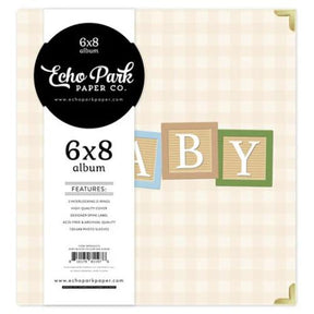 6x8 inch Echo Park album features: 2 interlocking d-rings, high-quality cover, designer spine label, acid-free & archival quality, 10 6x8 inch photo sleeves.