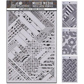 LuMania Stencil Mix Triple Layer Set. Pack of 3 individually designed stencils. 12,7x20,3 cm/ 5x8 inch, thickness 0,3 mm. Paint colour and ink compatible, easy to clean. Highly resistant. Resusable and long lasting.