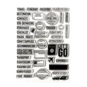 The 'Travel Journal' Clear Stamp Set is part of the Once in a Lifetime Collection from Planner Essentials. This fun text set includes words like travel, transport, and passport, making it perfect to document all your travels. This A5 (6" x 8") set includes 44 clear stamps.