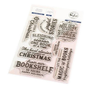 This book-themed seasonal sentiment set, designed by Kaitlin Sheaffer, pairs beautifully with the Tree of Tales stencil and die, but can be used with a variety of other product suites.