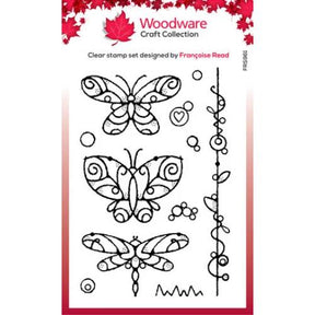 This is great stamps set designed to look like wire work butterflies, eleven stamp set for cards, scrapbooking projects and so much more! Add a personal touch with your favourite colouring medium. Designed by Francoise Read. This set would be perfect for cards and scrapbook pages as well as mixed media or fun dŽcor projects. Ready to mount on an acrylic block the stamps can be used with ink pads, paint, or used with pigment ink and embossing powder. They are suitable for use on paper, fabric, or any other surface depending on the ink choice. Clean your stamps with a wipe, damp cloth or under warm running water depending on the medium you use. Designed and made in the United Kingdom. 15 x 10.15 cm (6 x 4 inches). Eleven stamp set.