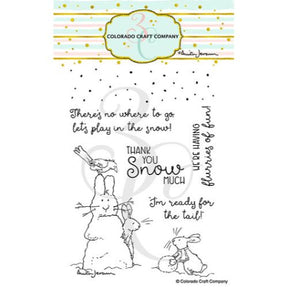 Have some fun in the snow with the Flurries of Fun Clear Photopolymer Stamp Set featuring the illustrations of Anita Jeram for Colorado Craft Company. The set includes clear photopolymer stamps with two small bunnies building a snow bunny together and an image of snowflakes falling. The stamps can be used with the coordinating Flurries of Fun die set sold separately (AJ552-D).
