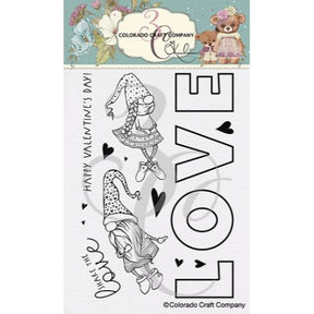 Share the love with the Sitting Gnomes Clear Photopolymer Stamp Set featuring the illustrations of Kris Lauren for Colorado Craft Company. The set includes clear photopolymer stamps with two sitting gnomes, various small heart stamps and large block letters to spell Love. The gnomes can sit on top of the LOVE letters.. The stamps can be used with the coordinating Sitting Gnomes die set sold separately (KL617-D).