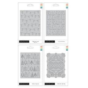 This is the Christmas Lights Inlay, Fa La La Inlay Die, Tree Lot Inlay Die, and Ornament Inlay Die together in the Holiday Inlay Dies Bundle.