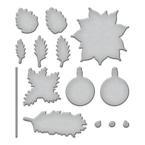 Halftone Holiday Etched Dies are from the Joyful Christmas Collection by Simon Hurley. The set of 14 thin metal cutting dies are designed to match and die-cut some of the images in HUR82323 Halftone Holiday Clear Stamp Set. Motifs included are detailed designed evergreen, a poinsettia, holly berry accents and sentiments. ThereÕs even an ornament string to attach to the ornament shapes. Joyful Christmas Collection is Simon HurleyÕs debut offering with Spellbinders! He shares his holiday motifs through a combination of cutting dies and hot foil plates to complement his signature stamp sets. Add these wonderful seasonal designs into your paper crafting creations! Approximate Size: Starry Ornament: 1.54 x 2.01 in./3.90 x 5.30 cm; Swirly Ornament: 1.49 x 2.03 in./3.80 x 5.20 cm; Ornament String: 0.11 x 3.74 in./0.30 x 9.50 cm; Evergreen Sprig: 3.38 x 1.45 in./8.60 x 3.70 cm; Berry (3 pcs): 0.40 x 0.35 in./1.00 x 0.90 cm; Holly Leaf Cluster: 2.01 x 2.08 in./5.10 x 5.30 cm; Holly Leaf 1: 1.70 x 0.76 in./4.30 x 1.90 cm; Holly Leaf 2: 1.68 x 0.81 in./4.30 x 2.10 cm; Holly Leaf 3: 1.32 x 0.56 in./3.40 x 1.40 cm; Pinecone 1: 1.08 x 1.43 in./2.80 x 3.60 cm; Pinecone 2: 1.21 x 1.45 in./3.10 x 3.70 cm; Poinsettia: 3.10 x 3.07 in./7.90 x 7.80 cm.