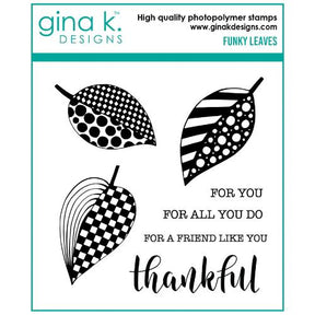 Gina K designs - STAMPS- Funky Leaves is backordered and will ship as soon as it is back in stock.