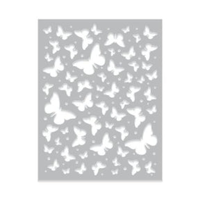 A die with two uses in one. Create a butterfly background while capturing the many-sized butterfly pieces to use as confetti or in shaker cards.