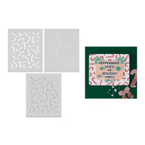 The Candy Cane Toss Up Stencil is a sweet and spirited way to sprinkle some holiday magic across your handmade cards and festive crafts. This fun all-over design features a playful scatter of candy canes, perfect for building whimsical winter backgrounds. Use with your favorite inks, pastes, or sprays to create layered textures and colorful candy-themed effects. Try traditional red and white, or experiment with bold color combos for a modern twist on a classic holiday treat. Ideal for cards, gift wrap, tags, and more!