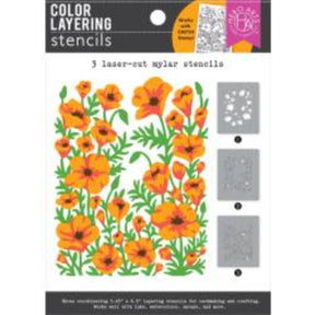 This set of three stencils creates a gorgeous display of blooming poppies. Use colors to mimic the bright orage of California's state flower, or let your imagination choose the colors! Use alone or pair the stencils with CM724 Golden Poppies stamp set