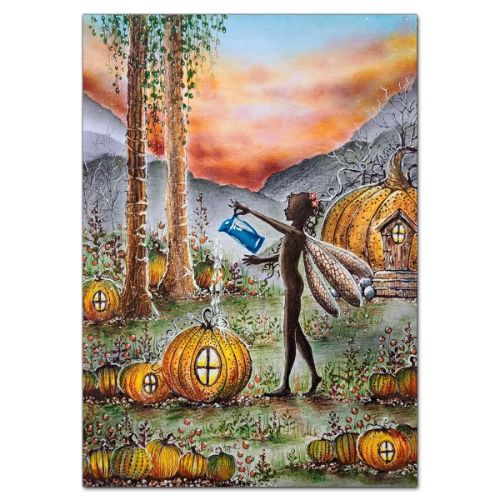 This pair of smaller pumpkins have lovely individual details. One stamp is a small pumpkin dwelling with oval window and twirling vine and the other shows a smaller grinning face of a carved pumpkin.