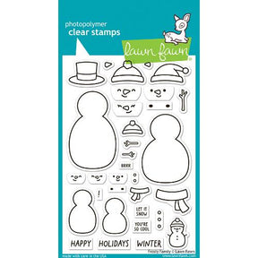 Create a whimsical winter family portrait with this charming stamp set! Each snowman has lots of ways to personalize! Layer with cozy accessories like scarves, hats, and buttons. The included tiny sentiments are perfect for All the Speech Bubbles too! Add your fluffy family members with the Frosty Family Add-On!