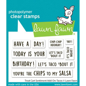 Lawn Fawn - Stamps - Treat Cart Sentiment Add-On: Tacos is backordered and will ship as soon as it is back in stock.