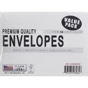 Leader Paper Products - A6 Envelopes (4.75"X6.5") 100/Pkg-White - Postage as per Actual