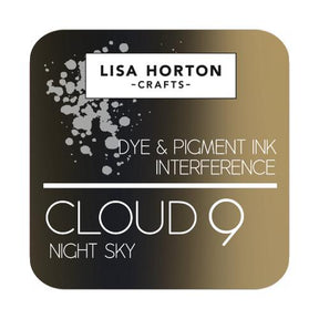 Introducing the Cloud 9 Interference Ink in Night Sky from Lisa Horton Crafts, a premium mixed dye and pigment ink pad designed for versatility and superior performance. This highly pigmented, metallic and shimmering ink has an interference effect that shifts hues when used on white paper and provides a saturated metallic color on black paper. Nontoxic and acid-free, this ink ensures safe and vibrant results on all your crafting projects.