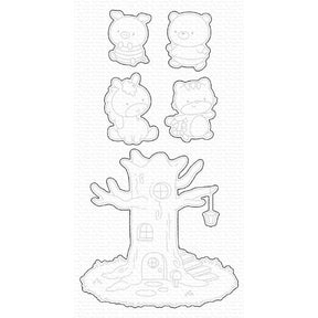This die coordinates with the Treehouse Hugs stamp set for perfectly die-cut images. The dies are open inside to allow you to stamp then cut or cut then stamp. This feature also allows for easier removal of the die cuts. The lighthouse scene die is an edge-only die, allowing you to customize the height of your background scene panel.