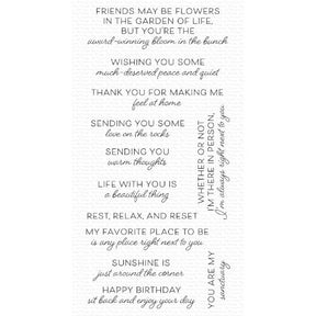 The very best spot to kick back and relax is often in your own backyard — a personal sanctuary tailored to meet all your needs! Outdoor Oasis Sentiments coordinate with a range of dies intended to celebrate your own backyard paradise and encourage your loved ones to enjoy the surroundings and people that bring them peace.