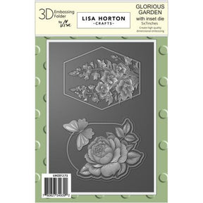 Lisa Horton Crafts Glorious Garden Embossing Folder and Die Set brings stunning floral dimension to your projects with deeply sculpted 3D detail. The folder features two elegant floral arrangements, complete with soft petals, leaves, and butterfly accents, while the included inset die lets you cut out the embossed shapes for layered focal points. Perfect for cards, tags, and mixed-media designs, this set adds graceful, high-impact texture to any creation.Package dimensions: 5.7 in x 0.2 in x 9.2 in (14.48 cm x 0.51 cm x 23.37 cm).