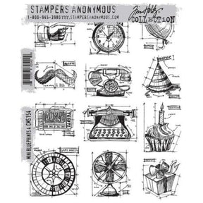 Stampers Anonymous Mini Blueprints 4 Tim Holtz Cling Stamps (CMS154)