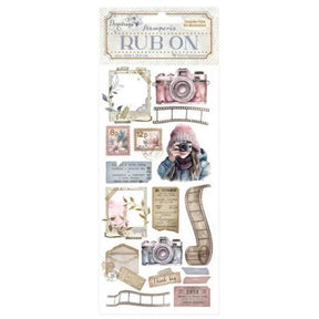 With Rub on you can transfer images on any kind of smooth surface, as if they were printed on it. Very suitable for Journaling and for decoration. Best on light colour surfaces. Rub-On 10,16x21,6 cm. Transfer film for decoration.