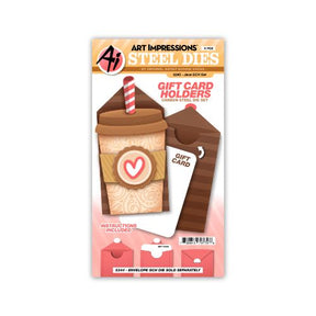 This gift card holder Java set includes dies for a coffee cup with lid, band and seal, as well as a straw, coffee bean, heart and filigrees for accessorizing. Like all of our Gift Card Holder sets, these dies are intended for use with our Envelope GCH set, sold separately.