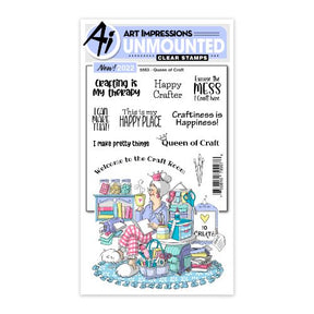 All hail the Queen! The perfect stamps for your crafty friends. This set includes the Queen of Craft stamp and her brushes with matching dies. A “Crafty” die and nine sentiment stamps.