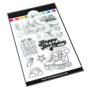 Let the Good Times Roll, my friend! With pairs of roller skates, complete with designs and pom pons, this stamp set will roll its way right into your card making heart! Use the heart, rainbow, stars, and swooshes to create a fun card for a friend that brings back memories of teenage years spent at the roller riink. The retro fonts on the sentiments, like Happy Birthday, make the set a throwback champ.