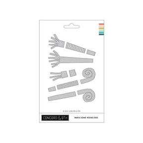 Add an extra dose of fun to your cards and other projects with the Make Some Noise Dies! This set is full of dies that will create two different noisemakers, perfect to embellish all types of celebratory cards. This die set contains 11 pieces. Made in USA.