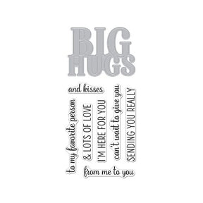 This Stamp & Cut features the word die “Big Hugs” as well as seven sentiment stamps for mixing and matching any occasion you are creating for.