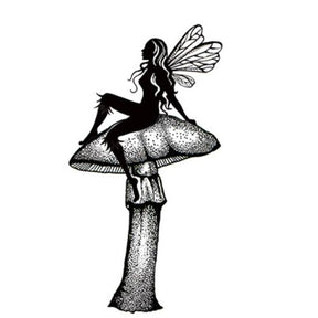 Silhouette Fairy on a mushroom,measuring at 8.5 cm x 4.5 cm.