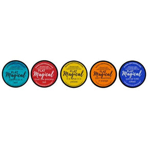 Our magicals are designed for use on everything from paper to wood, the dye-based powders are non-toxic and acid-free. Sprinkle them directly onto a porous surface and spray it with water for a vibrant stain, or mix them into different mediums to create potent pastes. Flat Magicals contain powdered dye and a fixative, but no shimmer.