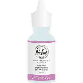 his re-inker compliments our dye Candy violet dye ink pad. Our USA made premium dye ink is acid free, making it perfect for stamping on your cards/scrapbooks or any other paper crafting project. This ink is fast drying, and perfect to use for water based techniques.