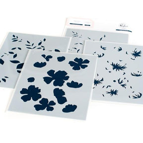 4 piece layering stencil set made to coordinate with the Delicate Floral Print stamp set. There is a separate stencil for each layer, with guidelines on each stencil for perfect alignment when using alone. When using the stencils with the stamped images you will forego the alignment guides, and instead align each layer to the stamped images. Use them without the stamped image for a soft, no-line coloring feel. Use the coordinating stamp to add more detail to the image by stamping with detail black, or heat embossing in your favorite powder. Stencil design measures approximately 4.25 x 5.25 inches. Imported.