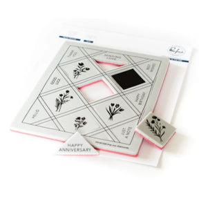 A timeless geometric pattern, we think you will reach for the Pop Out: Diamonds background time & time again! This stamp is designed to work perfectly with our 48 shades of premium dye ink, along with our vibrant liquid watercolor. Each piece pops out, giving you an array of design possibilities. This set includes a solid diamond, (5) florals and (8) sentiments. Easily pop the sentiments out and use them on any project! Create a rainbow gradient with the solid diamond, or heat emboss the silhouetted florals in gold for an elegant touch. The stamp set includes a frame to help guide layer placement. You can stamp all of the layers, or select just a few - the possibilities are endless with our Pop Out background stamps.