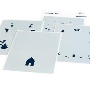 4 piece layering stencil set made to coordinate with the Tidings of Great Joy stamp set and Tidings of Great Joy die. There is a separate stencil for each layer, with guidelines on each stencil for perfect alignment when using alone. When using the stencils with the stamped images you will forego the alignment guides, and instead align each layer to the stamped images. While you can use them without the stamped image for a more abstract look, this set is more complete with the coordinating outline image found in the stamp set. Imported.