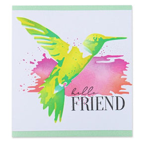 This handsome Hummingbird Layered Stencil set from Sizzix is the ideal product for Summer crafting. Build up this watercolor inspired design with the four elements in the set, designed perfectly to give layers of depth and dimension to your creation. This beautiful bird would make for a delightful home decor piece, a card front for your cardmaking projects, or in a scrapbook. A precise outcome can be achieved by using this set with the Sizzix Stencil & Stamp Tool (664896). Add a unique flare to your creation by adding in a lovely sentiment from the Sizzix range of Clear Stamps.