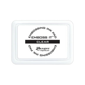 RANGER-Emboss It Clear Ink (pad). Specially developed embossing ink stays wet for an extended period of time to allow you to stamp/prepare your design, sprinkle your embossing powder on the wet ink, tap off the excess, then heat emboss with the appropriate tool. Acid free. Loaded Pad is approximately 3x2 inches with a removable lid. One-ounce re-inker available (sold separately). Made in USA.