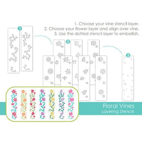 The Floral Vines Layering Stencils were specially designed to decorate the borders of our Perpetual Occasions Calendar (sold separately), but can be used to create cards (how about a set of coordinating cards?) and other crafts, as well! Simply choose one of the two vine stencils to create your first layer, then choose one of the seven flower stencils to add the blooms and blossoms of your choice. Finally, use the dotted stencil layer to embellish the space all around your unique border!