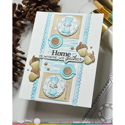 Use this stencil with the Table Runner Die to create colorful “tablecloths.” Two pattern options are included: a retro geometric weave and a cute gingham check.