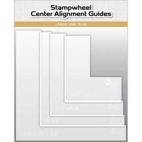 Place the guide in one corner of the Stampwheel on the Sticky Mat, making sure that the two outer sides of the guide are directly against two walls of the Stampwheel Stage (platform). Place your cardstock in the inner corner of the guide, making sure not to leave a gap. Remove the guide, and you will have a perfectly centered piece of cardstock!