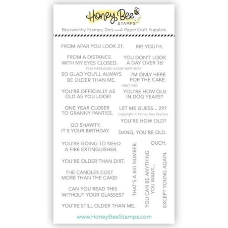 $46.00Unit price /UnavailableVery low stock (1 unit)Honey Bee Stamps - Mini Messages: Sassy Birthday 4x6 Stamp Set