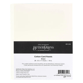 Get ready to elevate your stationery game with Bisque BetterPress Cotton Card sheets! This pack includes 25 natural white sheets, each measuring 8.50 x 11.00 inches and crafted from a curated 118lb. cardstock that works beautifully with the BetterPress Letterpress System. But that's not all! These sheets are also compatible with Spellbinders' 3D Embossing Folders, allowing you to create spectacular sculpted background designs.